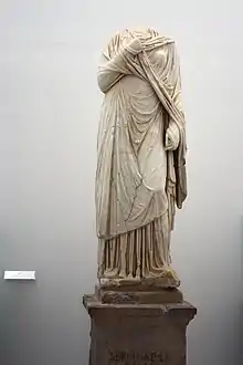 The Tomb of Servilia was the most monumental tomb of the Carmona necropolis. It was built to resemble a complete Roman villa and had a courtyard surrounded by porticos of colonnaded arches.[47] These were lined with statues, many of which have been recovered by archaeologists and are now in the Carmona City Museum and the Museo Arqueológico of Seville. The Tomb of Servilia served not only as a burial place for an influential patrician family with its columbarium and large circular mausoleum, but also as a conspicuous display of their wealth.