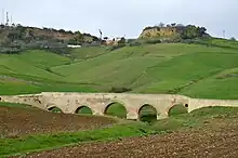 The history of Carmona begins at one of the oldest urban sites in Europe, with nearly five thousand years of continuous occupation on a plateau rising above the vega (plain) of the River Corbones in Andalusia, Spain. The city of Carmona lies thirty kilometres from Seville on the highest elevation of the sloping terrain of the Los Alcores escarpment, about 250 metres above sea level. Since the first appearance of complex agricultural societies in the Guadalquivir valley at the beginning of the Neolithic period, various civilizations have had an historical presence in the region. All the different cultures, peoples, and political entities that developed there have left their mark on the ethnographic mosaic of present-day Carmona.[1] Its historical significance is explained by the advantages of its location. The easily defended plateau on which the city sits, and the fertility of the land around it, made the site an important population center. The town's strategic position overlooking the vega was a natural stronghold, allowing it to control the trails leading to the central plateau of the Guadalquivir valley,[2] and thus access to its resources.