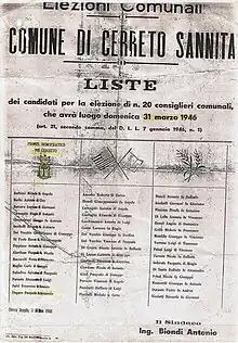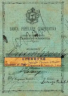 - ↑ Pescitelli, Renato (1981). La Società di Mutuo Soccorso tra gli Operai di Cerreto Sannita. Benevento: Auxiliatrix. pp. 22–24.