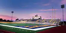 Facing a housing shortage as enrollment surged, Whitley turned to makeshift solutions, acquiring 20 prefabricated army dwellings from Camp Maxey in Paris for student housing.[60] Despite these and an additional 54 "hutments" provided by the federal government, approximately 600 prospective students were turned away due to lack of housing in 1946–47. Academic buildings were also needed, and during the end of his tenure Whitley had plans for new dormitories, a new women's gymnasium, a 10,000-seat stadium, and a swimming pool.[61] A drive to fund the new stadium, which was conceived as a memorial for the ETSTC students who died in World War II, was organized by local businessman and Ex-Students Association president Noble Arthur, who asked each faculty member to donate $75 to the effort.[62]