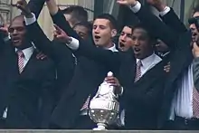 A huge party erupted in and outside De Kuip not only because of the title, but also because the final was held several days after Rotterdam's political hero Pim Fortuyn was murdered.[64] Many fans were still upset before and after the match. As a result of Fortuyn's murder, the cup was not officially celebrated in the city center.[65] Feyenoord hasn't won any further honours since the 2002 UEFA Cup win. They reached the final of the Dutch Cup in 2003, held in De Kuip, but were not able to beat FC Utrecht, which shocked the club with a 4–1 win.[66] Subsequently, Feyenoord has yet to reach any more finals or to win any more Dutch Championship titles.