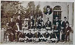 Seated: Celal Ibrahim (KIA, 1917), Sabri Mahir, Tevfik Fikret (headmaster), Hasan, Bekir.