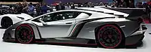 In 2013, the Veneno was introduced which was Lamborghini's interpretation of a racing prototype meant for the road. The sharp, angular designed body was based around the Aventador's monocoque and mechanical components. A roadster variant would follow up in 2014, fewer than 10 units would be sold at US$4,500,000 each, making it one of the most expensive Lamborghini automobiles ever produced.[61]