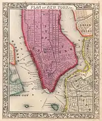 - ↑ For a visual overview of the era, see Eric Homberger, The historical atlas of New York City: A visual celebration of 400 years of New York City's history (Macmillan, 2005), pp 84-111