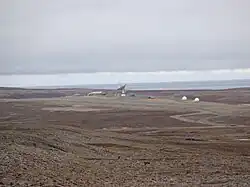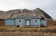 The Geophysical Institute of Tromsø established a geophysical station at Kvadehuken in 1920, consisting of a small hut and a radio mast allowing communication via Ny-Ålesund. It carried out meteorological surveys and geomagnetic field measurements and was manned by four men.[15] Two of these died in February 1922 while attempting to rescue a trapper. The station was closed in 1924 due to lack of funding.[16] The Church of Norway never established a presence in Ny-Ålesund, although the minister at Svalbard Church in Longyearbyen visited Ny-Ålesund irregularly.[17] Most of the children in town were below school age. However, during the 1920–21 winter there were 23 children in town and an improvised school was taken into use for the year.[18]