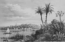 Duarte Coelho, donatário of the Captaincy of Pernambuco, left Portugal in October 1534 and arrived at the mouth of the Igarassu River on March 9, 1535, landing at Reduto dos Marcos. The site of the Igarassu factory was ideal because it ensured a peaceful occupation due to the long coexistence between the indigenous people and those who lived there. There, on September 27, 1535, he founded the village of Cosme e Damião. After its foundation, he organized an expedition and found a site near a beach protected by a barrier reef with narrow openings that he considered strategic and easily defensible. However, the place was occupied by a village of Caeté indigenous people, who were expelled after a violent battle.[29]
