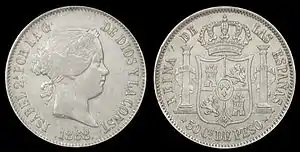 In order to remedy this damage in the monetary situation, Queen Isabella II issued a decree in 1857 ordering the founding of the Casa de Moneda de Manila in the Philippines in order to coin gold 1-, 2- and 4-peso coins according to Spanish standards (the 4-peso coin being 6.766 grams (0.2387 oz) of 0.875 gold). The first gold coins were minted in 1861. In the same year, a royal decree ordered the minting of 50-, 20- and 10-centimo silver coins out of Latin American coins also according to Spanish standards (with 100 centimos containing 25.98 grams (0.916 oz) of 0.900 silver). The price of silver has since gone down and the first silver coins were minted in 1864.