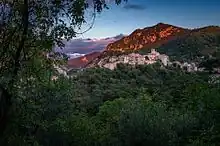 Some of the summits surrounding the Terni plain continued to be inhabited, such as the southern foothills of the Martani Mountains, scattered with small settlements, located between 700 and 1,000 meters above sea level, not all of them for habitation purposes. The most important of these is the fortified site of S. Erasmo di Cesi, datable to at least the fifth century B.C., provided with two small necropolises dating from the ninth to sixth centuries B.C., which was built a little lower than the cultic complex of Torre Maggiore, dating from the sixth century B.C, but probably frequented from much earlier, in which a number of votive offerings have been found, mostly of a warrior nature; this indicates the military nature of the preeminent groups located on these heights.[6] The unproven report that above Rocca San Zenone was the Umbrian oppidum of Vindena probably refers to the remembrance of these highland settlements.
