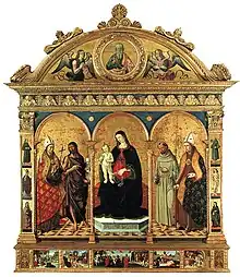 At the beginning of the 15th century it fell under the seigniory of Andrea Tomacelli, one of the brothers of Pope Boniface IX, who, as podestà of Terni, vainly attempted to make it a stronghold of resistance against the expansionist aims of the Visconti.[32] Between 1408 and 1415 it hosted the allied troops of Ladislaus I of Naples, who supported it in its operations against rival Spoleto. In 1417 it was subject to the lordship of Braccio da Montone,[33] but in 1421 mercenaries in the pay of Pope Martin V brought it back under papal power.[34] The occupation in 1434 by Francesco Sforza's troops was only a sporadic episode in the context of the war for supremacy between Florence and Milan.[35]