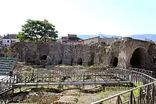The classical sources do not mention when Terni became part of Roman administrative structures. Shortly before the outbreak of the Third Samnite War Rome embarked on a campaign of war against the Nequinati, the inhabitants of what is now Narni, where, after the taking of Nequino, they established a Latin colony, giving it the name Narnia.[7] In 290 B.C., or shortly thereafter, M. Curius Dentatus promoted both the construction of the Via Curia, connecting Terni to Rieti,[note 2] and, in 271 B.C, the cutting of the Marmore ridge,[8] to facilitate the outflow of the waters of the Velino into the Nera; it is therefore probable that, after the first half of the third century B.C., the inhabited nucleus, which arose at the confluence of the Serra in the Nera, had been Romanized into a Latin colony with the name of Interamna. It is not known whether the foundation of the colony took place at the same time as that of Narnia, but, similar to other colonial foundations, it is presumable that this is what happened.[note 3] Incidentally, the walls that surrounded the perimeter of the Roman settlement seem to date back to this era.
