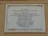 Tocco-Castiglione station (left) and plaque on the historic town hall commemorating its construction (right)