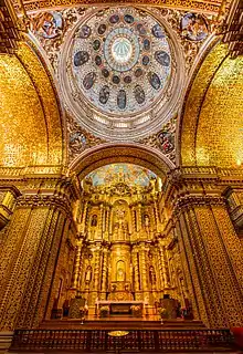 In Lima, the "City of Kings", capital of Spain's Viceroyalty of Peru, frequent earthquakes prompted the use of quincha construction for the vaulting of the church of San Francisco (1657-74) by Constantino de Vasconcelos and Manuel de Escobar. Quincha was an adaptation of an indigenous wattle and daub technique and consisted of a wooden structural framework filled out with cane or bamboo and covered with plaster and stucco to resemble stone. The anti-seismic properties of this light and elastic system allowed the 36.9 foot wide double-shell dome of the church, a hemisphere and lantern resting directly on pendentives, to survive for more than three hundred years and it became universally adopted along the Peruvian coast. Another 17th century example is the dome of the church of Santo Domingo in Lima (1678-81).[81]