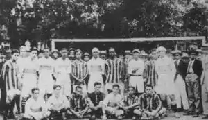 The São Paulo Athletic Club was the first football team in Brazil, formed in 1894 by Charles Miller, and the Associação Atlética Mackenzie College, from 1898, was the first team dedicated to Brazilians.[12] The first club destined only for football was the São Paulo Sport Club Internacional, founded in 1899 and already extinct. Soon after, in the same year, the Sport Club Germânia was founded by the German Hans Nobiling, today under the name Esporte Clube Pinheiros.[13]