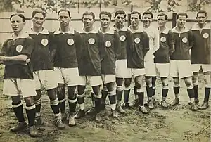 However, amateurism could not resist for long, either by the internal situation of football in Brazil or in the world. In 1923, in Italy, Juventus paid for the transfer of the athlete Viri Rosetta, but went to court asking for the annulment of the points achieved with him on the pitch. The Italian court ruled in favor of Juventus, setting the precedent for teams to take players from other teams at the cost of money, introducing professionalism in the country.[46] Similarly, several other nations have adopted professionalism since 1924, such as Spain and Austria in Europe, as well as South American neighbors Argentina and Uruguay. The spread of professionalism led FIFA to authorize the participation of athletes who received salaries in the first World Cup in 1930.[47] Internally, the situation was also getting complicated for amateurism. In 1932, a group of players published a manifesto in the newspaper Gazeta Esportiva asking for the right to exercise their profession as football players.[32] In 1933, the player Floriano Peixoto Correa, known as Marechal da Vitória, publishes the book Grandezas e Misérias do Nosso Futebol, where he critically addresses amateurism.[48] According to Correa: