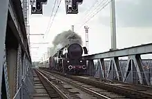 1873–1874: From Diekirch, along the Sauer, a new project was started, the Ettelbrück-Wasserbillig line. 50 km in length, in order to avoid tunnels it went all the way through the Sauer valley up to Wasserbillig. On 20 October 1873 the Diekirch – Echternach line was inaugurated in the presence of Prince Henry, in Echternach. It was only fully functional from 8 December 1873, as there was still some work to be done. On 20 May 1874 the Echternach-Wasserbillig line started work.[4]