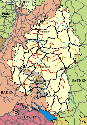 Any additional expansion of the rail network required negotiations with neighbouring states. Along with Bavaria and Baden, these states included Prussia, whose territory of Hohenzollern bordered on Württemberg, and Hesse, whose exclave Wimpfen was situated between Baden and Württemberg.