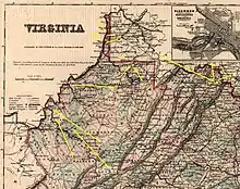 - ↑ Ambler, Charles H., A History of West Virginia, 1933, pgs. 276–279