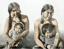 Inuit women and their children on King's Island, Canada, 1910. Tattoos on arms and chins.