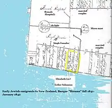 Hort's father, Abraham Hort Senior[17] saw New Zealand as a possible haven for impoverished English Jews and a potential refuge for oppressed Jews of eastern Europe and elsewhere.[18] The Jews' Hospital (Neveh zedak), which was largely funded by the Goldsmid family,[19] sponsored two Jewish women to emigrate in 1841 on the barque Birman: Elizabeth Levy, (sister of the Levy brothers), and Esther Solomon, who was being sent to marry one of the brothers.
