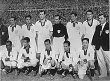 By 1941, la Blanquirroja's star-studded squad was beginning to show its age.[35] In the same year, Peru and Argentina played a three-game series for the Copa Roque Saenz Peña in Lima, and a struggling Peru managed to draw twice before finally losing the third match 3–0.[36] The national squad's diminishing effectiveness was most apparent during the South American Championships of the 1940s,[37] where the team's most positive performances came from goalkeeper José Soriano.[38] Peru would not win another international title until 1947, when the side won the Bolivarian Games.[33] Three years later, at the South American Championship held in Brazil, Peru gained third place after defeating Colombia, Ecuador, Bolivia, Chile, and Uruguay.[39]