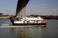 In 1981, Red Funnel acquired two Hovermarine HM2 Mk III SES craft from Hovertravel. They primarily worked as charters to Vosper Thornycroft, transporting workers from the Isle of Wight to the Woolston shipyard.[31] This service was not available to the public, but the craft occasionally appeared on the Fast Passenger Ferry Service (usually operated by Shearwater Hydrofoils). The hovercraft were gone by 1982, made redundant by the arrival of Shearwater 6.[32]