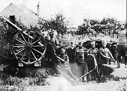 Serbia formed on 8 June 1915 one of the first air defense and air warning units in the world. This was due to the massive onslaught of German and Austro-Hungarian aircraft. The first airplane shot down by ground fire unit in World War I happened over skies of Serbia. During the German air attack on city of Kragujevac on 30 September 1915, air defense artillerist Radivoje-Raka Lutovac from "Tanasko Rajić" Regiment, shot his first hit, by his artillery modified gun, a Farman airplane with two crew members. Without any sophisticated cannon sights, he was aiming through the bore of his gun.