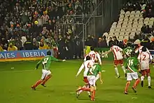 Before independence, an unofficial team was formed in 1928, comprising the best Tunisian players from the Tunisian League. The team's first match was on 11 March 1928, against the France national football B team; Tunisia lost 8–2.[15] Their next friendlies, against the same team on 23 March 1930 and 26 March 1933, also resulted in heavy defeats: 0–5 and 1–6 respectively. Tunisia had to wait until 1932 for their first match win: a 1–0 victory over French Algeria.[16]