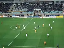 Nevertheless, the team defeated strong Nigeria 1–0 with the goal of Youssef Msakni from outside the penalty area, despite the absence of Mondher Kebaier from the match due to his infection with the COVID-19 virus, and he was replaced by his assistant Jalel Kadri.[207] In the end, the team was eliminated from the quarter–finals against Burkina Faso after a 0–1 defeat.[208] After this disappointing participation, Mondher Kebaier was dismissed from coaching the national team three years after his appointment and the appointment of his assistant Jalel Kadri. as his successor. Meanwhile, the draw for the third round of the African 2022 FIFA World Cup qualification was held, as it resulted in a home–and–forth match against Mali. In the first leg match at the Stade du 26 Mars in Bamako, Tunisia won out of the rules 1–0 thanks to Mali's Moussa Sissako's own goal after pressure from Youssef Msakni,[209] As for the return match at the Stade Hammadi Agrebi in front of 50,000 spectators, it ended in a 0–0 draw,[210] so that the Tunisian team qualified for the FIFA World Cup for the sixth time in its history.[211]