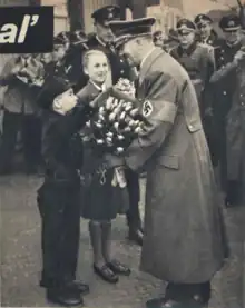 Heinrich Hoffmann, who was Hitler's personal photographer, published the book "Youth Around Hitler" ("Jugend um Hitler") in 1934, which was intended to show that Hitler cared about children.[80]