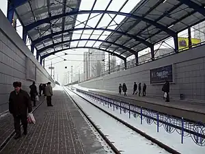 Closed for reconstruction as part of the route "Ivan Lepse"- "Hnata Yury" on June 13, 2009.[1] During the reconstruction, an arched ceiling was built over the platforms and tracks and the entrance pavilions were renovated, as well as a track connecting the branches from Gnata Yuri to the Kiltseva Doroga station and to Mykhailivska Borshchahivka. On October 16, 2010, the station of high-speed trams was opened after reconstruction, trams of routes № 1 and № 3 stop here.[2]