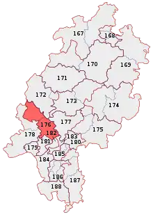 Hochtaunus is an electoral constituency (German: Wahlkreis) represented in the Bundestag. It elects one member via first-past-the-post voting. Under the current constituency numbering system, it is designated as constituency 176. It is located in southwestern Hesse, comprising most of Hochtaunuskreis and the northeastern part of the Limburg-Weilburg district.[1]
