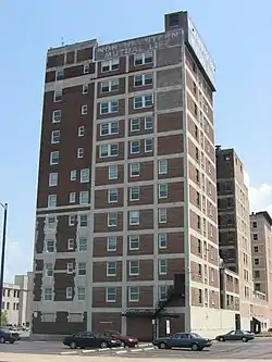 Hoffman Hotel is a historic hotel building located at South Bend, St. Joseph County, Indiana. It was built in 1930, and is a 12-story, red brick building with limestone trim and terra cotta mosaic tile panels in an eclectic style. It originally housed 21 small apartments and 150 hotel rooms. It is located next to the LaSalle Hotel.[2]: 37