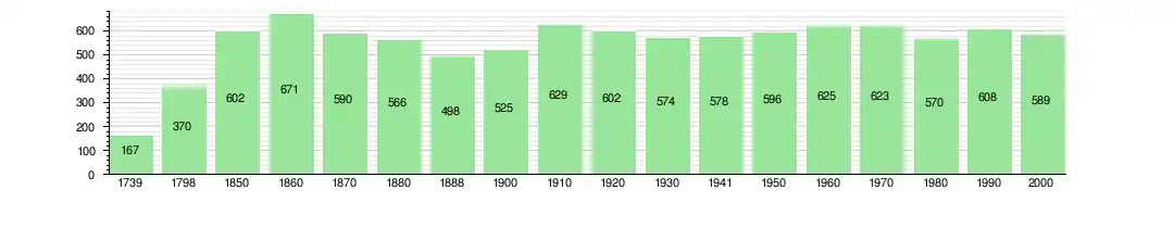 As of 2000, there were 260 private households in the municipality, and an average of 2.3 persons per household.[8] There were 89 households that consist of only one person and 19 households with five or more people. Out of a total of 263 households that answered this question, 33.8% were households made up of just one person and there were 3 adults who lived with their parents. Of the rest of the households, there are 81 married couples without children, 66 married couples with children. There were 14 single parents with a child or children. There were 7 households that were made up of unrelated people and 3 households that were made up of some sort of institution or another collective housing.[9]