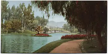 Hollenbeck Park has been a lush oasis in the neighborhood since 1892. The park was named for John Edward Hollenbeck (1829-1885), founder of First National Bank, whose widow, along with former L.A. Mayor William Workman, donated 21 acres (85,000 m2) of land.