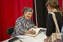 Holly Black (née Riggenbach;[1] born November 10, 1971) is an American writer and editor best known for her children's and young adult fiction. Her most recent work is the New York Times bestselling young adult Folk of the Air series. She is also well known for The Spiderwick Chronicles, a series of children's fantasy books she created with writer and illustrator Tony DiTerlizzi, and her debut trilogy of young adult novels officially called the Modern Faerie Tales.[2] Black has won an Eisner Award, a Lodestar Award, a Nebula Award, and a Newbery Honor.