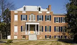 Holly Hall is a historic home located at Elkton, Cecil County, Maryland, United States. Built by James Sewall ca. 1810–20, it is a 2+1⁄2-story, Federal-style brick mansion built about 1810. The one-story brick north wing was added as a chapel in the 20th century. Also on the property is a late-19th-century two-story wood tenant house and two concrete block buildings. A few holly trees remain of the many which gave this house its name. Its parapets are unique in Maryland.[2]