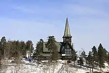 Holmenkollen Chapel (Holmenkollen kapell) is located in the neighborhood of Holmenkollen in the Vestre Aker borough of Oslo, Norway. The original chapel from 1903 was destroyed by arson in 1992. The new chapel was completed in 1996. Holmenkollen Chapel is a listed site, registered in Norway's cultural heritage database.[1]