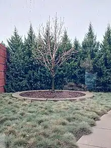 In 2009, the HC was selected as one of the eleven sites in the United States to receive a sapling from the tree that grew outside of Anne Frank's hiding place in Amsterdam.[13] The exhibit emphasizes that as she was in hiding for almost two years, she could only see out of a single window, where she would gaze at this white chestnut tree. The tree blooms outside behind the exhibits signage which details the diary of Anne Frank and the contributions of her history to a larger understanding of the Holocaust.