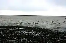 The lagoon has a sedimented bottom and no appreciable salt gradient. Species found there include Gammarus zaddachi and Gammarus duebeni.[3] Eurasian oystercatchers frequent it.[4] Above Holtsós is a deep freshwater pool called Hellisvatn after the cave that overlooks it, Steinahellir, which was the location of the district assembly for Eyjafjöll from 1818 to 1905.[5] Hellisvatn does not freeze and therefore attracts many birds in winter when other sources of water are frozen over.