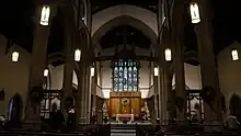 The first stained glass windows were dedicated in 1928 in memory of John Franklin Brown Jr., a parishioner who died in the First World War.[1][2] Another memorial window was dedicated in 1945.[3]