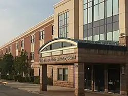 Holy Trinity Catholic Secondary School is a Catholic high school located in North Oakville in the River Oaks area within Oakville, Ontario. The school's construction was completed in the summer of 2002 and the school opened to new students and staff in September 2002. The school initially had only Grade 9, Grade 10 and Grade 11 students. This was Holy Trinity's first year open and the size was approximately 800 students, while the 2018-2019 student and staff member count has more than doubled in size. The 2019–2020 school year has around 1330 students enrolled in the school. Holy Trinity fosters a respectful and supportive Catholic environment that inspires all students to reach their full potential. Holy Trinity offers students a comprehensive academic curriculum, an outstanding co-curricular program, and an important Catholic learning experience that will prepare them for their post-secondary goals. HT's legendary and daily saying is “treat everyone with equity, dignity, and respect”. Holy Trinity offers many specialty programs such as the most recent Advanced Placement (AP) program for grade 9 students (September 2017), Specialist High Skills Major (SHSM) Program, Dual Credit Course with Sheridan College and other various technology courses. Interestingly, the school is a twin build of Christ the King Catholic Secondary School in Georgetown, Ontario. The blueprints of this school are a mirror image of Holy Trinity's and both schools were opened in September 2002.