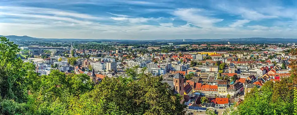 Homburg (German pronunciation: [ˈhɔmbʊʁk] ⓘ; French: Hombourg, [ɔ̃buʁ]; Palatine German: Humborch) is a town in Saarland, Germany and the administrative seat of the Saarpfalz district. With a population of 43,029 inhabitants (2022),[3] it is the third largest town in the state. The city offers over 30,000 workplaces. The medical department of the University of Saarland is situated here. The city is also home to the Karlsberg beer brewery. Major employers include Robert Bosch GmbH, Schaeffler Group and Michelin.