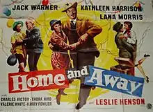Home and Away is a 1956 British drama film directed by Vernon Sewell and starring Jack Warner and Kathleen Harrison.[1] It depicts the life of an ordinary working-class man after he wins the football pools. The film reunited Warner and Harrison who had previously appeared together in the Huggetts series of films.[2]