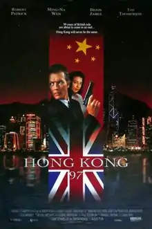 Hong Kong '97 is a 1994 American political action thriller film directed by Albert Pyun starring Robert Patrick, Brion James and Tim Thomerson. The story revolves around the transfer of sovereignty over Hong Kong from the United Kingdom to the People's Republic of China. An assassin kills several high-ranking Chinese officials and must get out of the country quickly before he himself is murdered.[1]