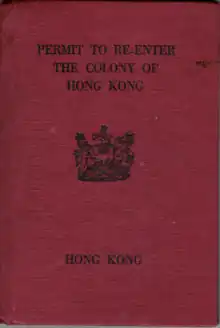 Hong Kong Re-entry Permit (Chinese: 回港證; Cantonese Yale: Wùigóngjing) are issued to Hong Kong residents by the Hong Kong Special Administrative Region (HKSAR) for travel to mainland China and Macau Special Administrative Region.[1]