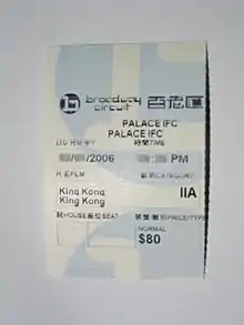 A movie ticket in Hong Kong indicating the rating of King Kong.