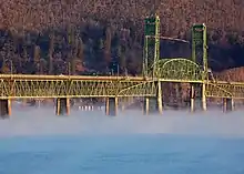 The Hood River–White Salmon Interstate Bridge, or just the Hood River Bridge, is a truss bridge with a vertical lift that spans the Columbia River between Hood River, Oregon, and White Salmon, Washington. It connects Interstate 84/U.S. Route 30 on the Oregon side with Washington State Route 14.[2]