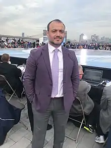Hooman "Mo" Tavakolian (born Mohammad Ali Tavakolian, September 17, 1976) is an Iranian-American former wrestler, author, wrestling coach, sports diplomat and a member of United World Wrestling.[1] Tavakolian was nominated in 2017 for the Peace and Sport Federation's “Diplomatic Action of the Year” award for his efforts to bring together the Islamic Republic of Iran Wrestling Federation and the USA Wrestling Federation through the 2017 Wrestling World Cup, during which he was leader of the US team. Iran, the World Cup host, had initially barred the US team from competing in retaliation for President Trump's travel bans.[2] He is a 2017 National Wrestling Hall of Fame and Museum inductee.[3][4][5] He is an executive on Wall Street and works at a global hedge fund. and is on the board of directors of Titan Mercury Wrestling.[6][7][8]