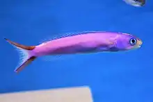 Hoplolatilus purpureus, the purple sand tilefish, is a species of marine ray-finned fish, a tilefish belonging to the family Malacanthidae. It is native to the western central Pacific Ocean where its range includes Indonesia, Timor-Leste, Philippines, Papua New Guinea and the Solomon Islands.[1] It is native to the seaward side of reefs and occurs at depths of from 30 to 85 metres (98 to 279 ft). This species can reach a length of 13 centimetres (5.1 in) total length. It can also be found in the aquarium trade.[2]