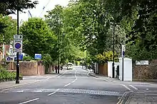 Hornsey Lane at the junction with Hornsey Lane Gardens, on the left, and Whitehall Park